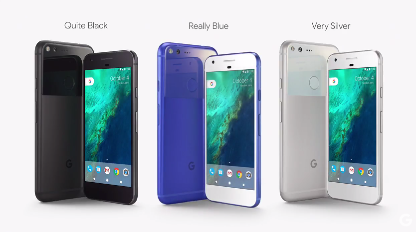 Google Pixel is available in three colors: Quite Black, Very Silver and, as a limited edition, Really Blue.