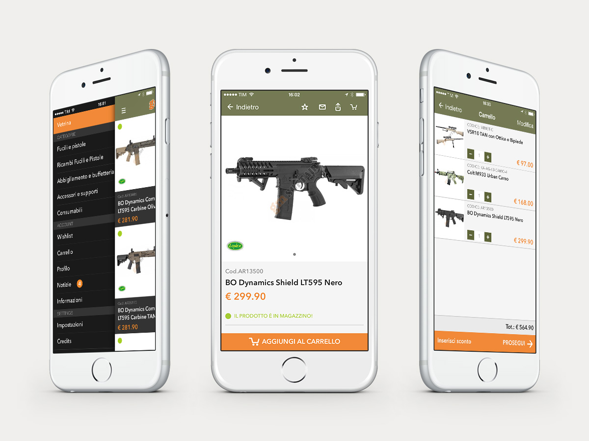 GM Softair srl, a company specialized in the sale of airsoft items, relied on Mr. APPs for the creation of a new website + mobile applications with the E-Commerce feature. The purpose is to introduce and showcase the item catalog handled by the company.