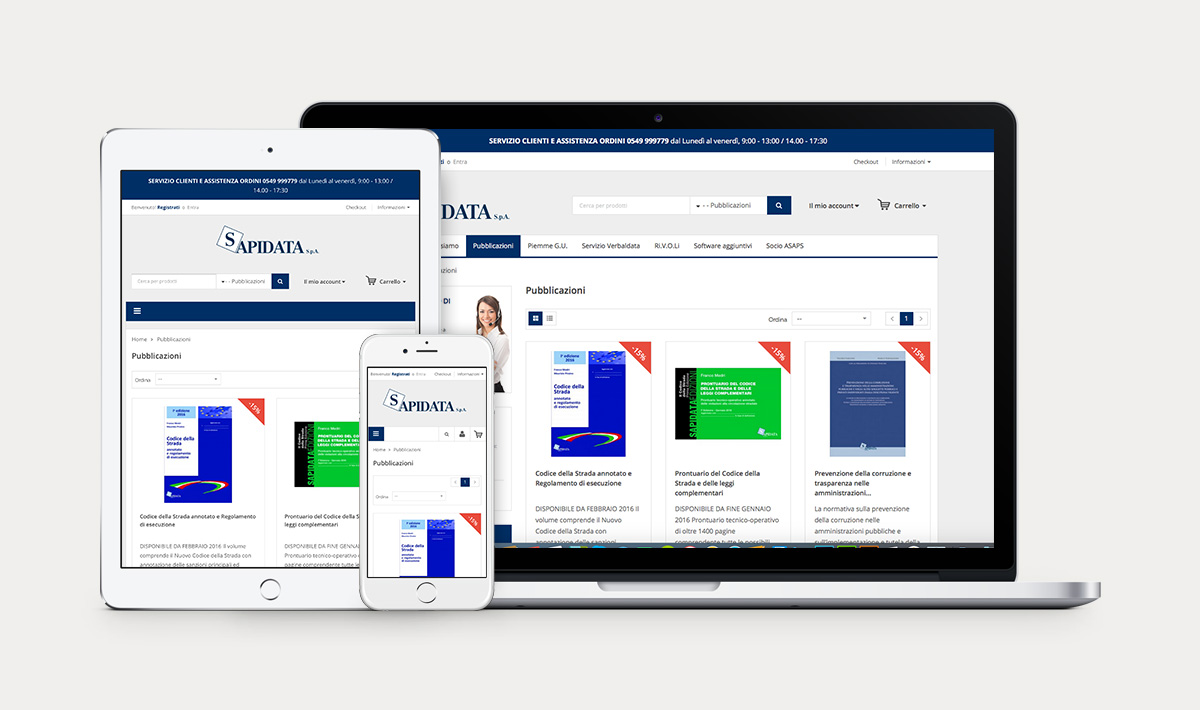 Sapidata S.p.A, a company with over 20 years of experience in supplying services for the public administration, chose Mr. APPs to build a new mobile-friendly website with the E-Commerce feature, in order to introduce their softwares, services and the purchase feature of publishing products.